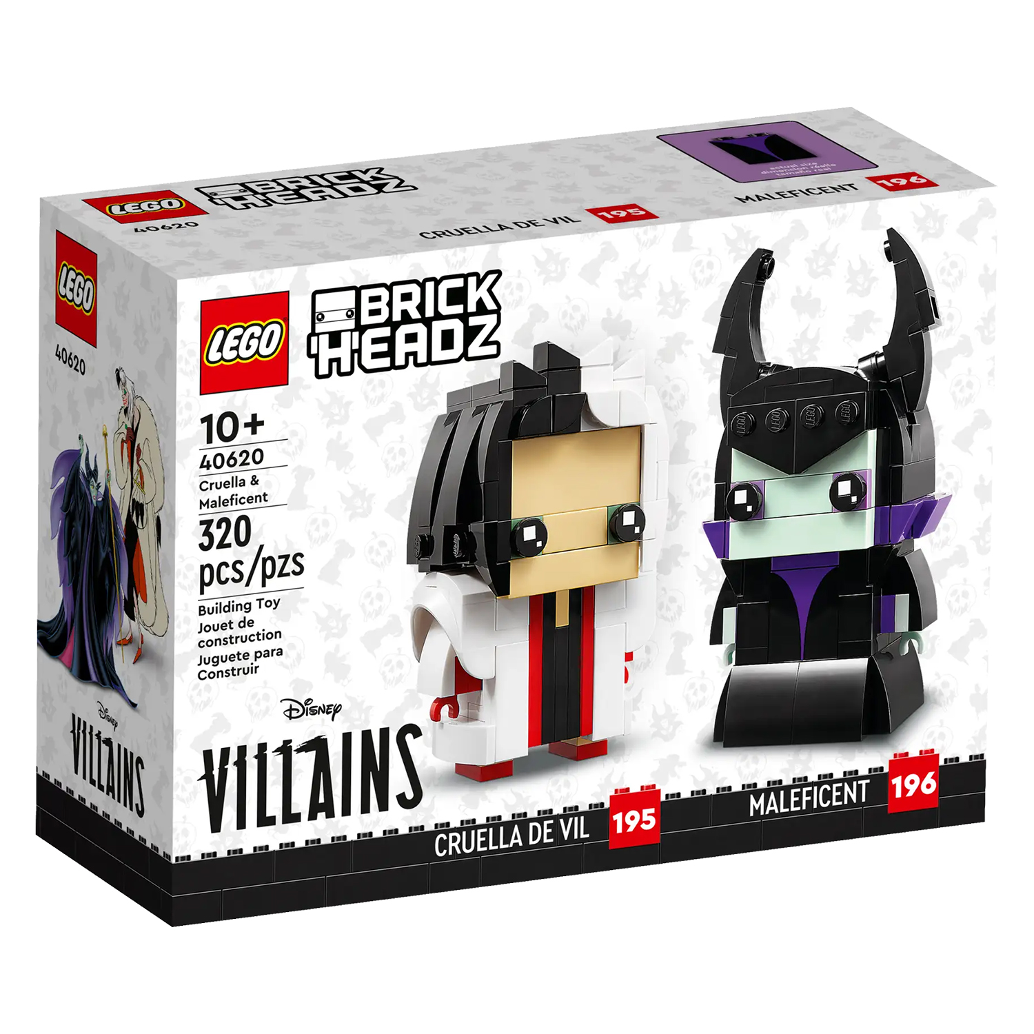 • Schurken van LEGO stenen – bouwbare LEGO® BrickHeadz™ figuren van Disney’s Cruella & Maleficent (40620) om neer te zetten. Een leuk cadeau voor filmfans of oudere kinderen met een passie voor Disney schurken