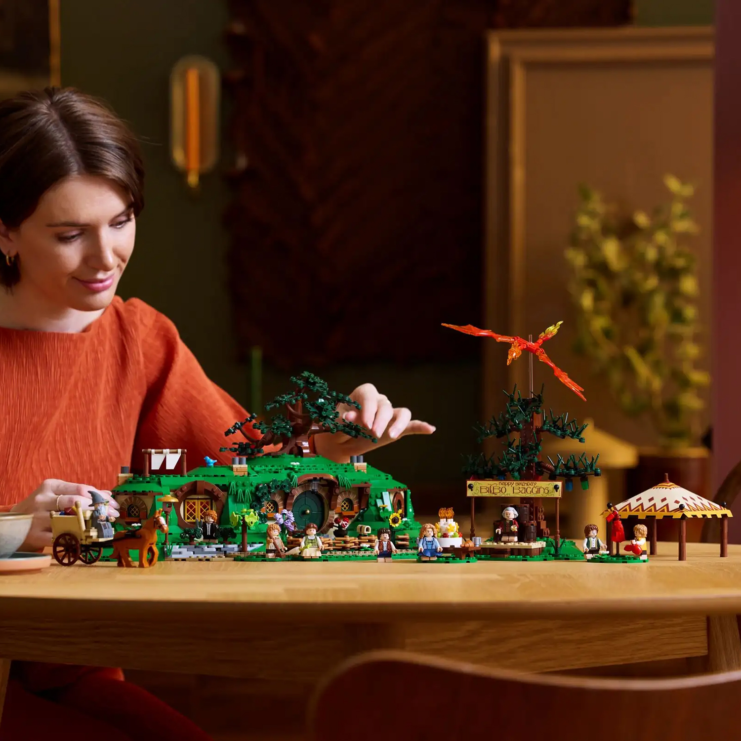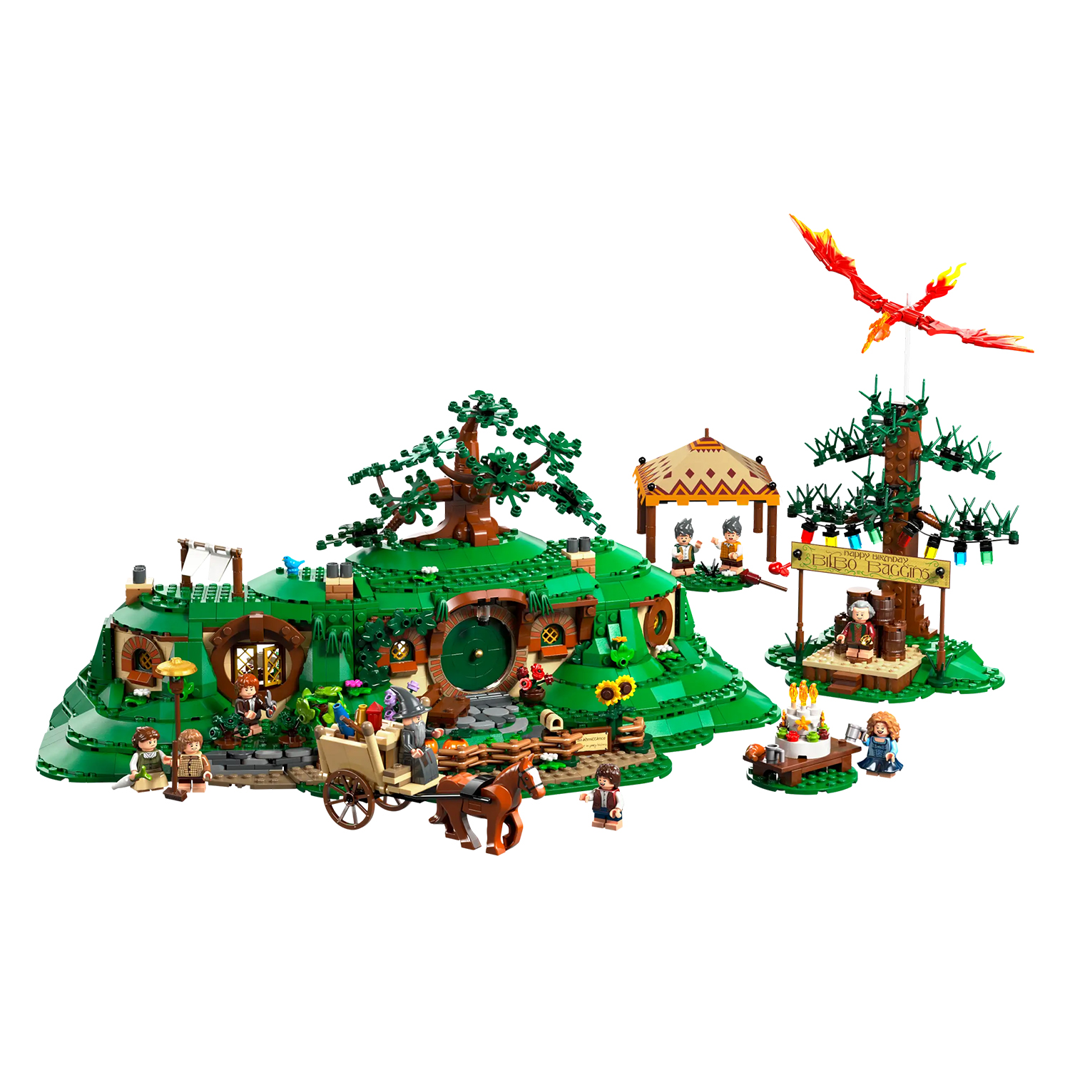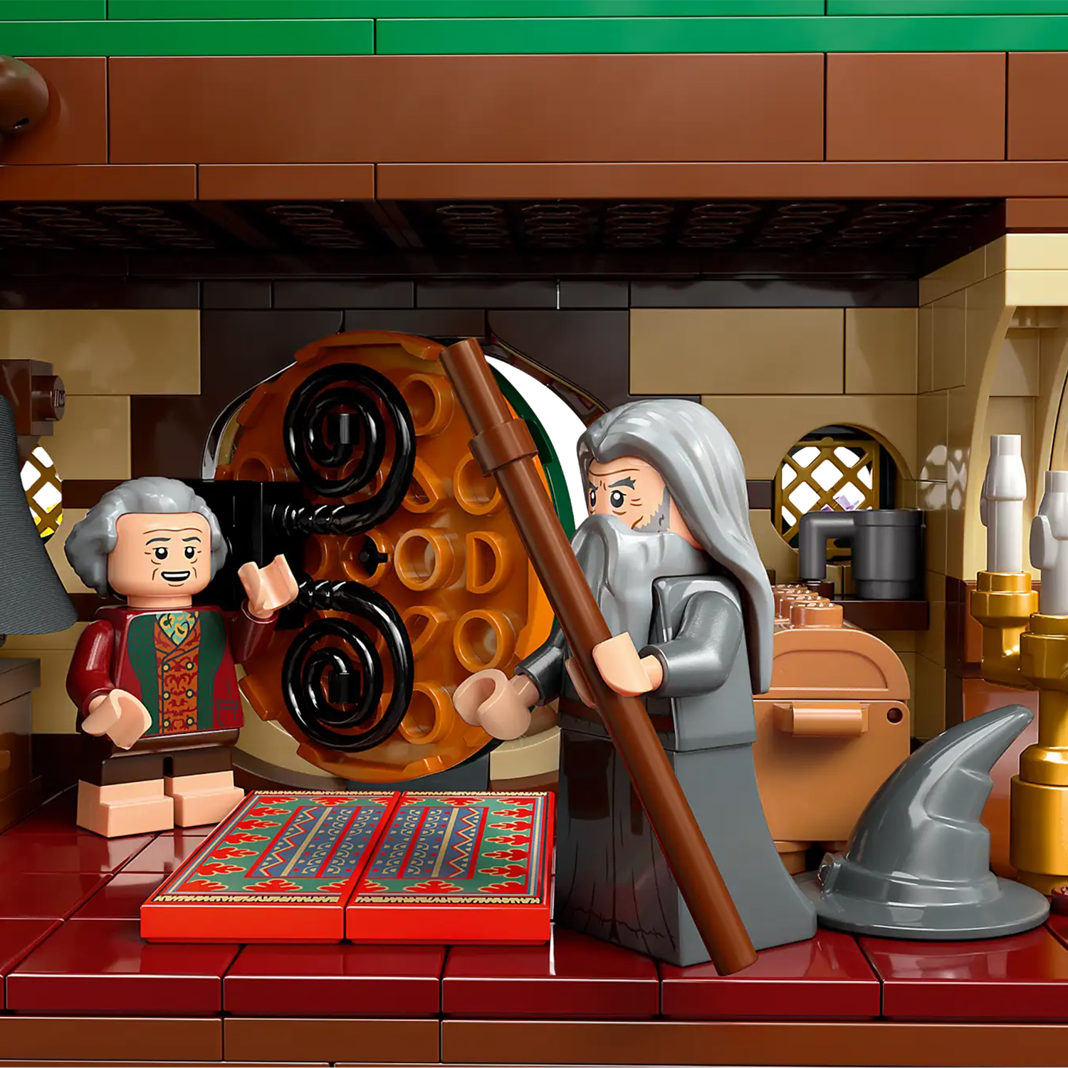 • Boordevol details uit de film – inclusief Gandalfs paard en wagen, vuurwerk, een vuurwerkdraak, de Feestboom, het feestpaviljoen en het boek van Bilbo, dat open of gesloten kan worden weergegeven