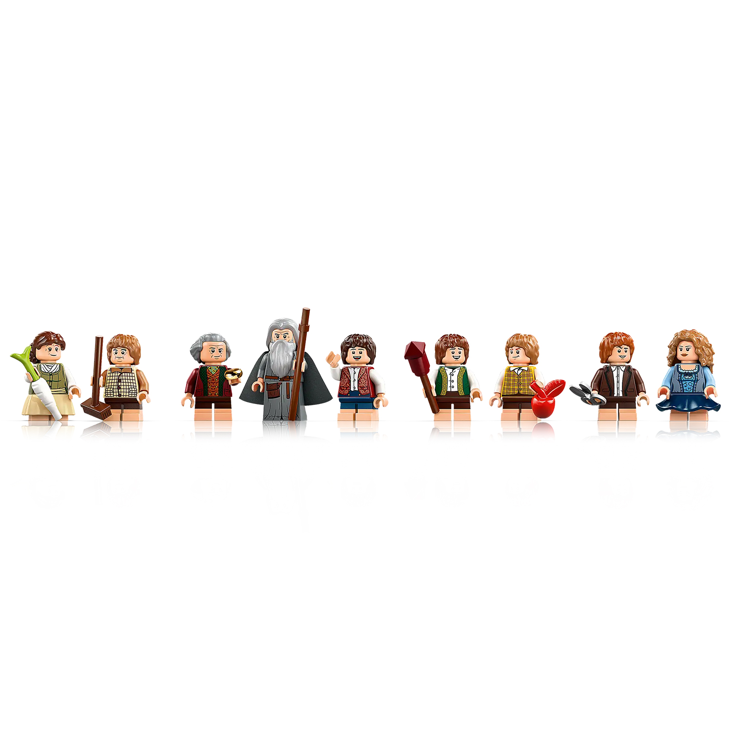 • Wat zit er in de doos? – alles wat je nodig hebt om een LEGO® model te bouwen van de Gouw™ met minifiguren van Bilbo Balings, Frodo, mevrouw Trotsvoet, boer Trotsvoet, Merijn, Pepijn, Roosje, Sam en Gandalf de Grijze